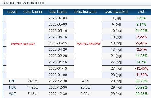 W 30 już tygodniu 2023 roku skład portfela nie ulega zmianie.